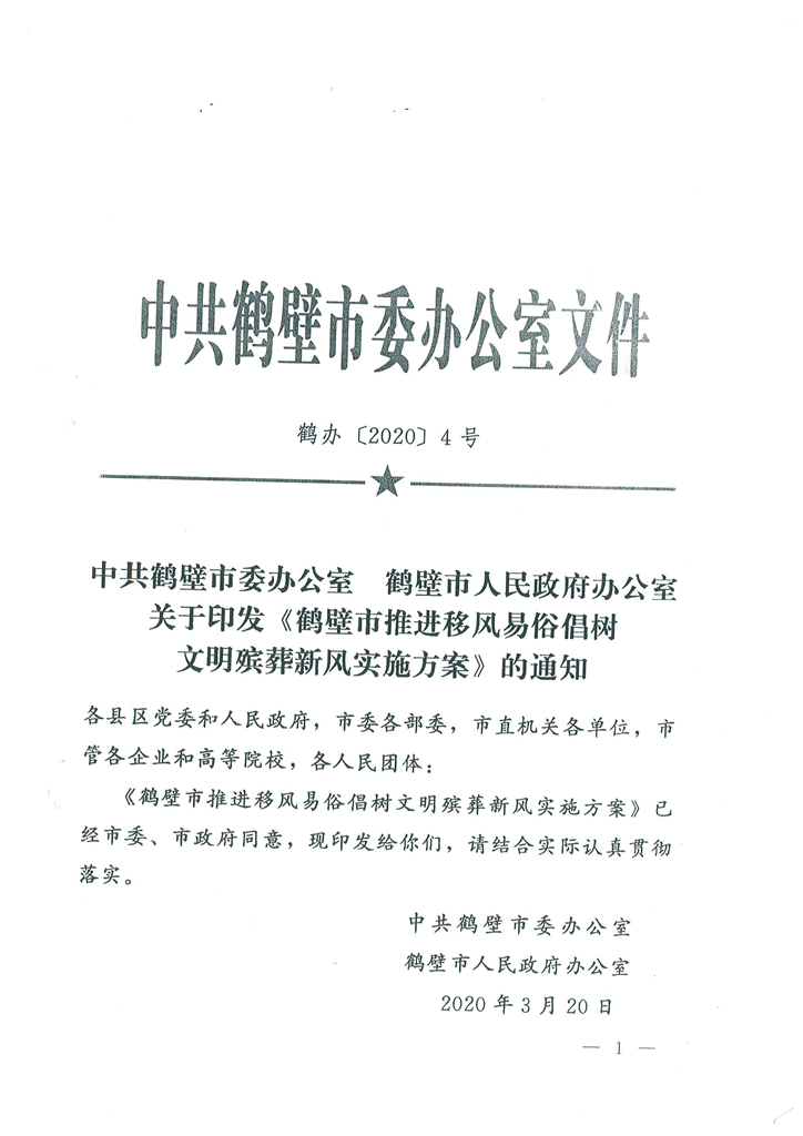 中共鹤壁市委办公室鹤壁市政府办公室关于印发ㄍ鹤壁市推进移风易俗倡树文明殡葬新风实施方》的通知