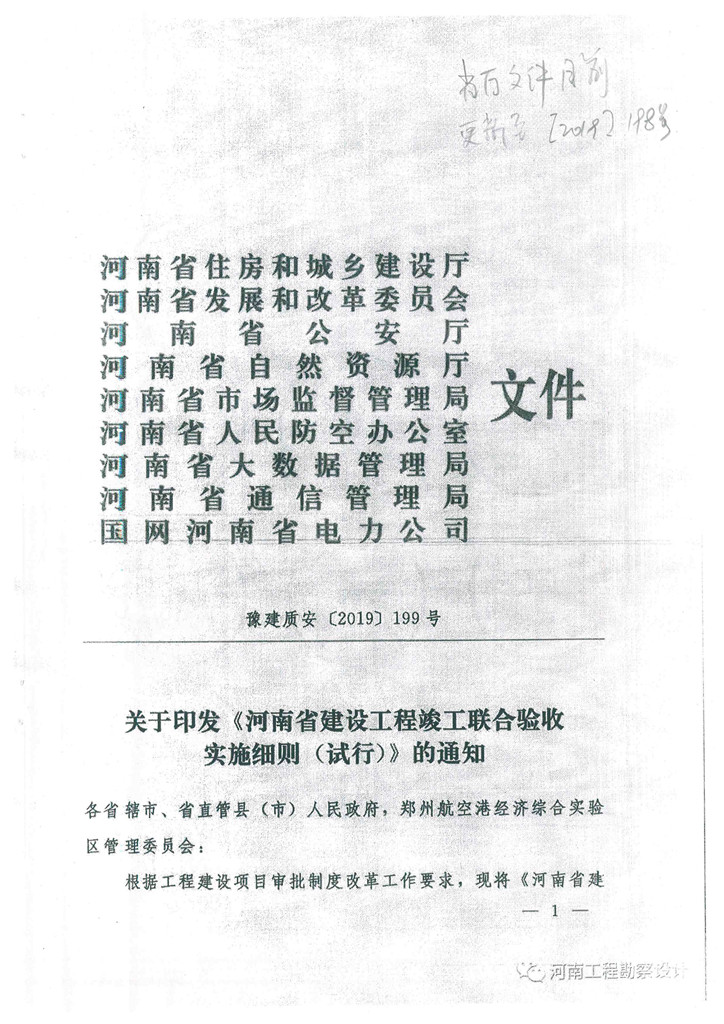 关于印发《河南省建设工程竣工联合验收实施细则(试行)》的通知